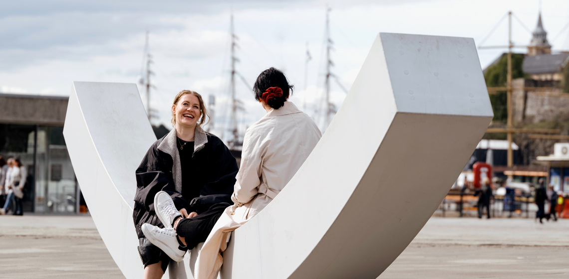 The Peace Bench, a public installation symbolizing dialogue as a powerful tool for peace, is designed by Snøhetta and built by Vestre with renewable aluminum from Hydro. Commissioned by the Nobel Peace Center, the bench's shape invites people to gather and converse, rooted in the belief that lasting solutions begin with listening. (Photo: Bjørnar Øvrebø)